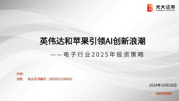 【光大证券】【20241028】电子行业2025年投资策略:英伟达和苹果引领AI创新浪潮-90页 行业研究