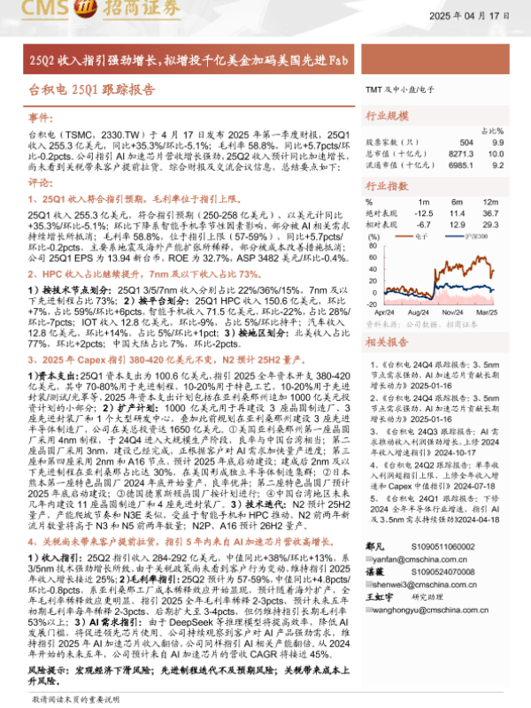 【海通证券】【20250417】电子行业台积电25Q1跟踪报告-10页 公司研究