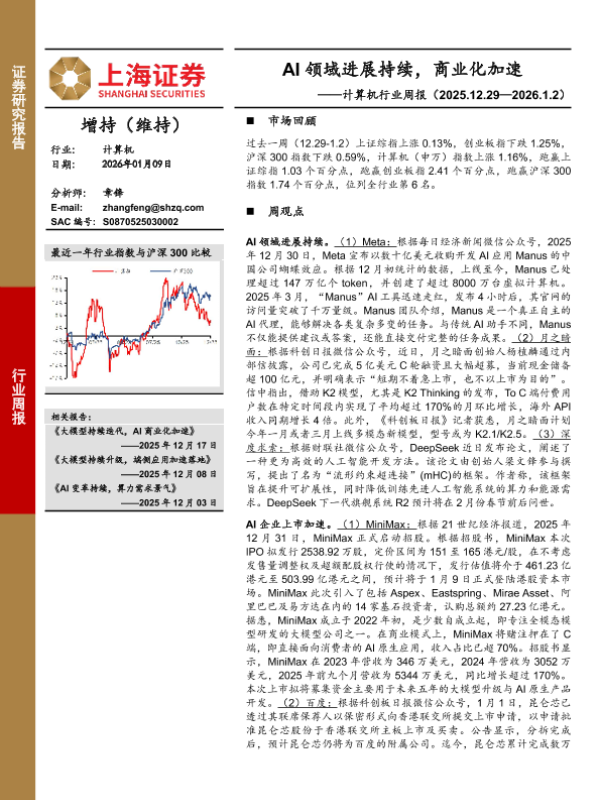 【上海证券】【202601】计算机行业周报:AI领域进展持续,商业化加速-3页 证券期货研究报告