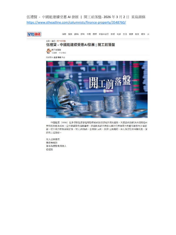 【光大证券(国际)】【202603】中国能建续受惠AI发展-1页 证券期货研究报告
