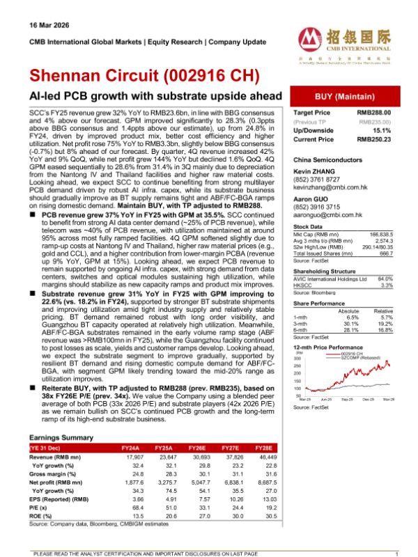 【CMB International Global Markets】【202603】Shennan Circuit(002916 CH)-AI-led PCB growth with substrate upside ahead-5页 证券期货研究报告