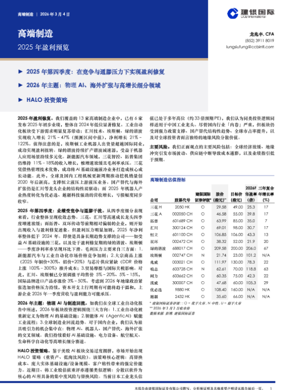 【建银国际】【202603】高端制造:2025年盈利预览-3页 证券期货研究报告