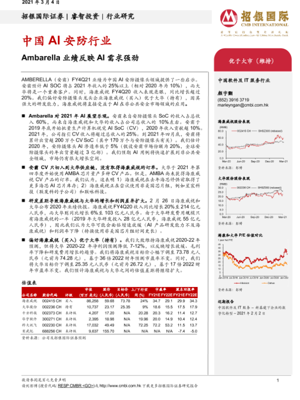 【招银国际证券】【20210304】中国AI安防行业:Ambarella业绩反映AI需求强劲-2页 行业研究
