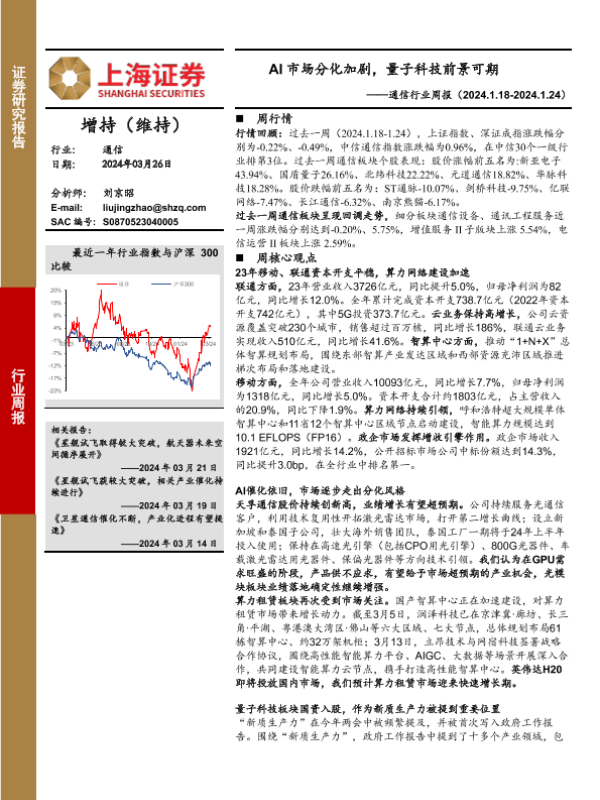 【上海证券】【20240326】20240326-上海证券-通信行业周报:AI市场分化加剧,量子科技前景可期-11页 行业研究