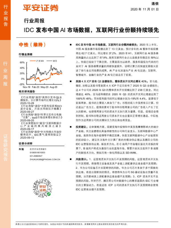 【平安证券】【20201101】IDC发布中国AI市场数据,互联网行业份额持续领先-6页 行业研究