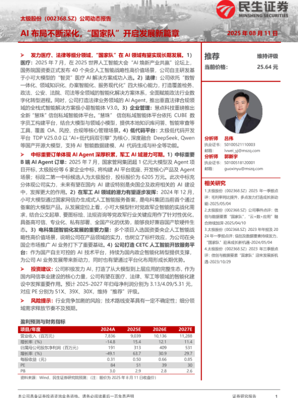 【民生证券】【202508】太极股份(002368.SZ)公司动态报告 AI布局不断深化,“国家队”开启发展新篇章-15页 证券期货研究报告