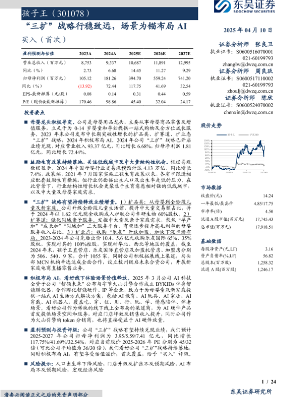 【东吴证券】【20250410】孩子王“三扩”战略行稳致远,场景为锚布局AI-24页 公司研究