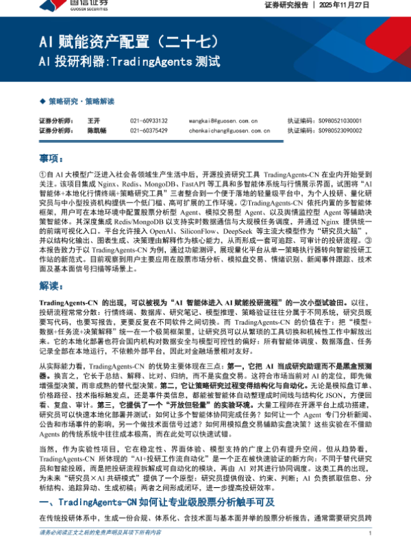 【国信证券】【202511】A I赋能资产配置(二十七):AI投研利器 TradingAgents测试-7页 证券期货研究报告