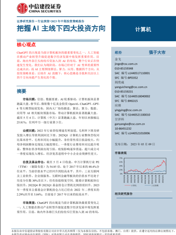 【中信建投证券】【20230509】计算机行业2023年中期投资策略报告:把握AI主线下四大投资方向-35页 行业研究