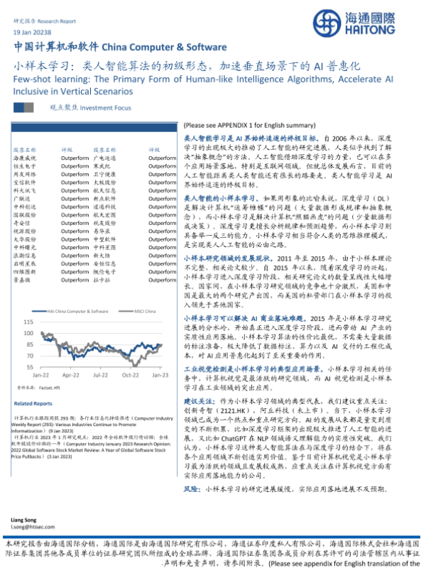 【海通国际】【20230119】中国计算机和软件行业:小样本学习,类人智能算法的初级形态,加速垂直场景下的AI普惠化-41页 行业研究