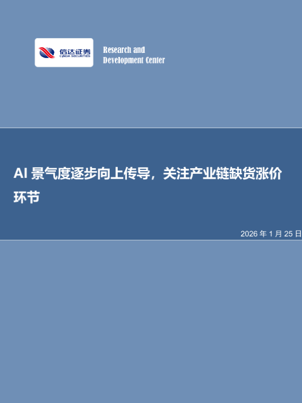 【信达证券股份有限公司 C INDA SECUR IT IES CO.<D】【202601】AI景气度逐步向上传导,关注产业链缺货涨价环节-11页 证券期货研究报告