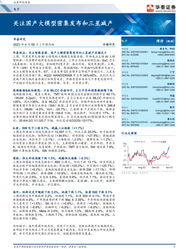 【华泰证券】【20230409】电子行业专题研究: 关注国产大模型密集发布和三星减产-38页 行业研究