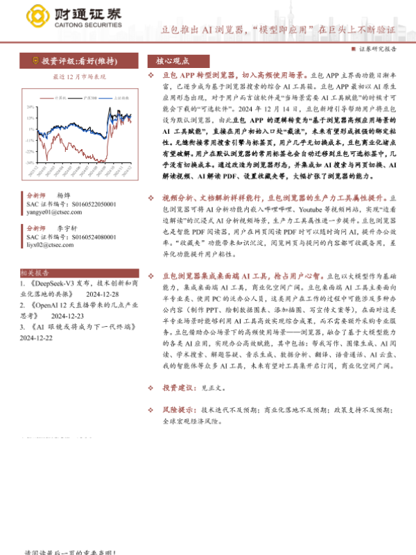 【财通证券】【20241229】计算机行业专题报告:豆包推出AI浏览器,“模型即应用”在巨头上不断验证-15页 行业研究