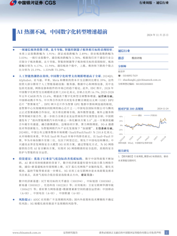 【银河证券】【20241125】通信行业行业周报:AI热潮不减,中国数字化转型增速超前-16页 行业研究