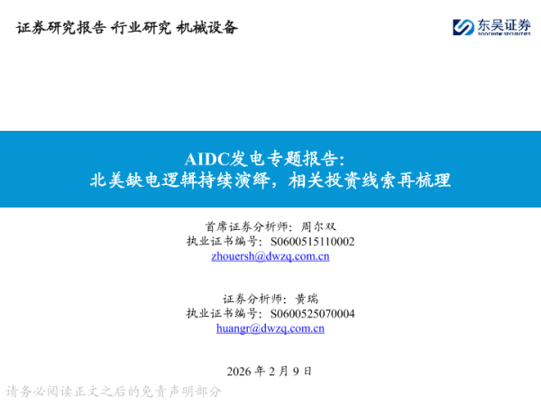 【东吴证券】【202602】AIDC发电专题报告:北美缺电逻辑持续演绎,相关投资线索再梳理-43页 证券期货研究报告