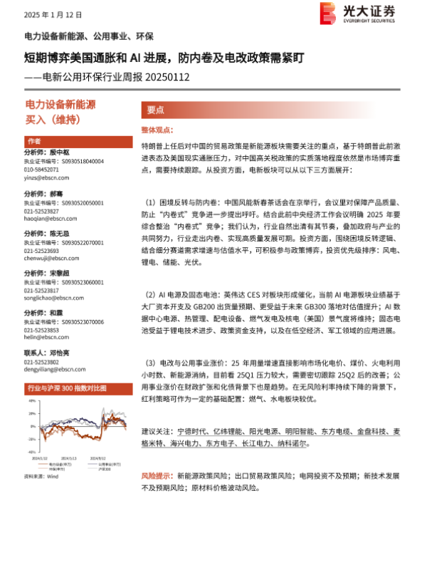 【光大证券】【20250112】电新公用环保行业周报:短期博弈美国通胀和AI进展,防内卷及电改政策需紧盯-11页 行业研究