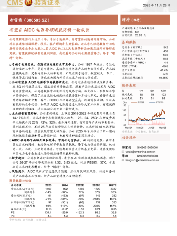【海通证券】【202511】新雷能(300593)有望在AIDC电源等领域获得新一轮成长-19页 证券期货研究报告