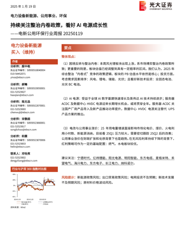 【光大证券】【20250119】电新公用环保行业周报:持续关注整治内卷政策,看好AI电源成长性-11页 行业研究