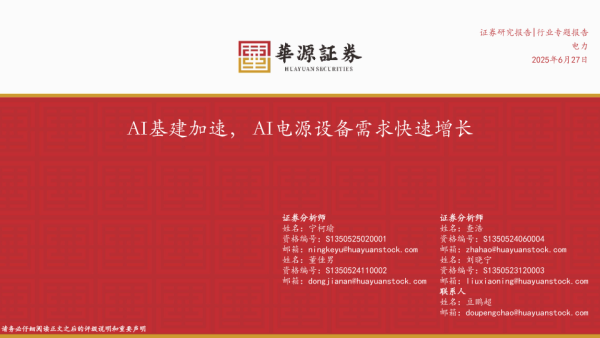 【华源证券】【20250627】电力行业专题报告:AI基建加速,AI电源设备需求快速增长-35页 证券期货研究报告