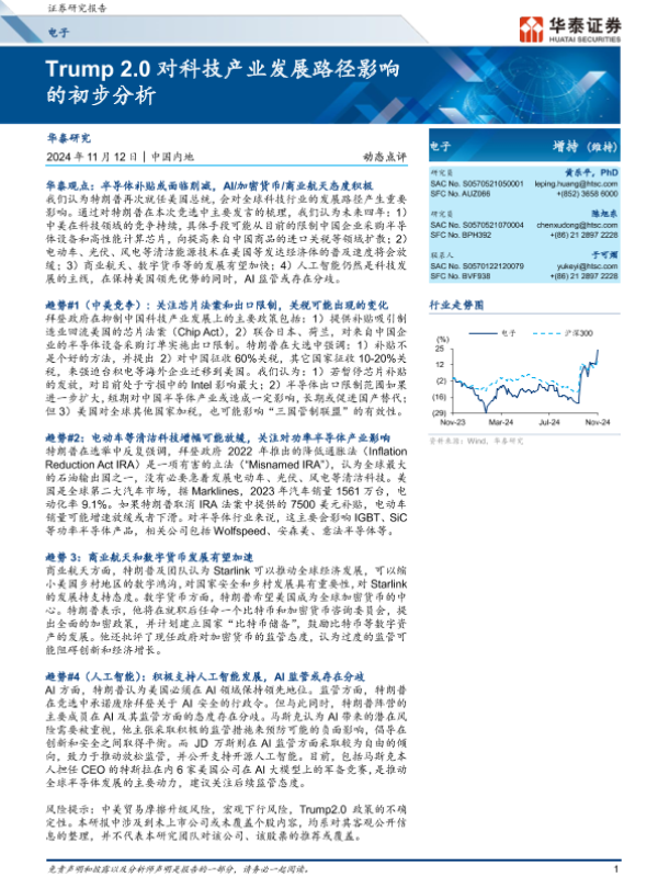 【华泰证券】【20241112】电子动态点评:Trump 2.0对科技产业发展路径影响的初步分析-13页 行业研究