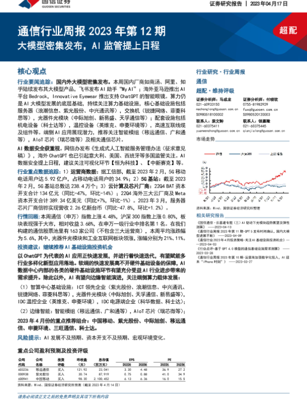 【申港证券】【20230416】20230416-申港证券-通信行业研究周报:数字乡村建设稳步推进 AI监管势在必行-13页 行业研究