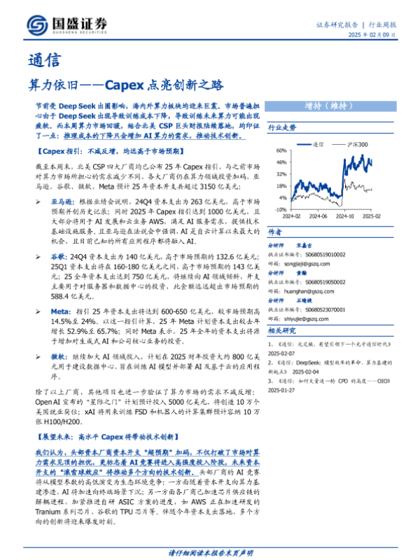 【国盛证券】【20250209】通信行业周报:算力依旧——Capex点亮创新之路-17页 行业研究