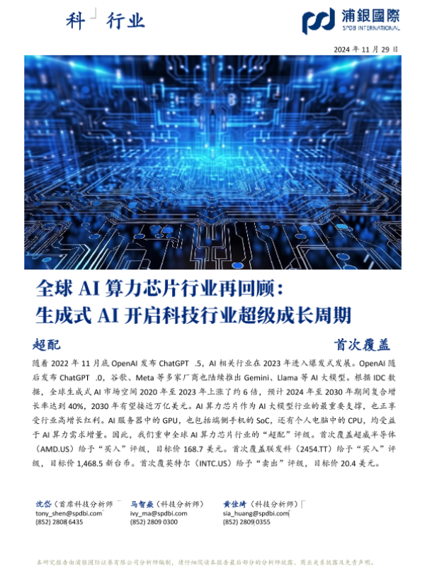 【浦银国际】【20241129】全球AI算力芯片行业再回顾:生成式AI开启科技行业超级成长周期-100页 行业研究