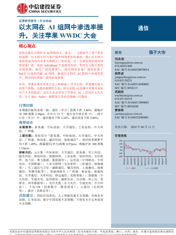 【中信建投证券】【20240611】通信行业:以太网在AI组网中渗透率提升,关注苹果WWDC大会-12页 行业研究