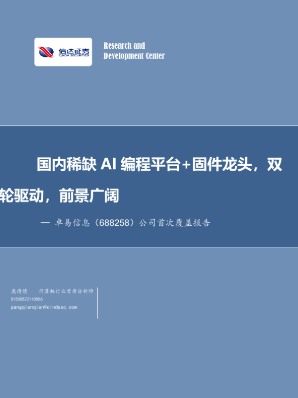【信达证券】【20250217】卓易信息(688258)公司首次覆盖报告:国内稀缺AI编程平台+固件龙头,双轮驱动、前景广阔-25页 行业研究