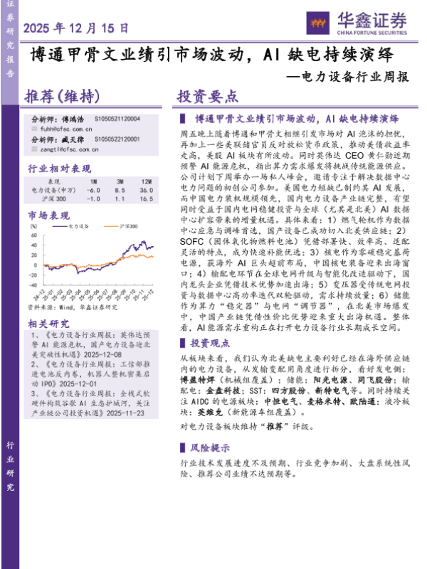 【华鑫证券】【202512】博通甲骨文业绩引市场波动,AI缺电持续演绎-19页 证券期货研究报告