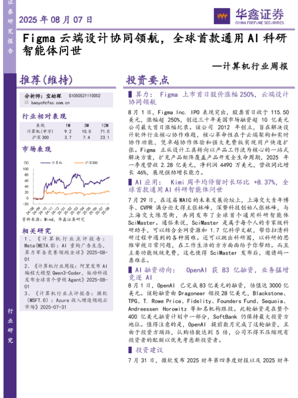 【华鑫证券】【20250807】Figma云端设计协同领航-全球首款通用AI科研智能体问世-16页 证券期货研究报告