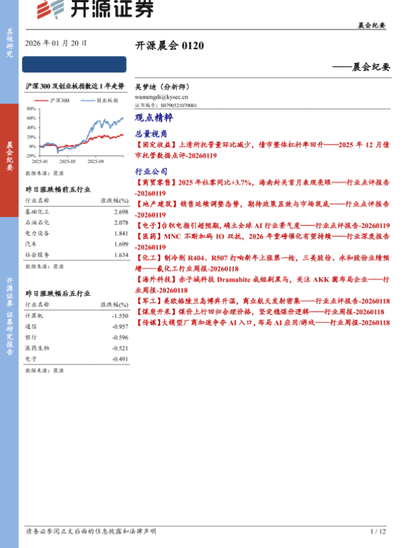 【开源证券】【202601】开源晨会-12页 会议纪要