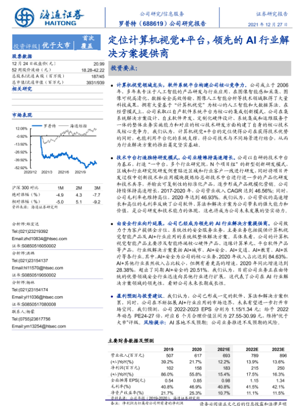 【海通证券】【20211227】罗普特-688619.SH-定位计算机视觉+平台,领先的AI行业解决方案提供商-38页 行业研究