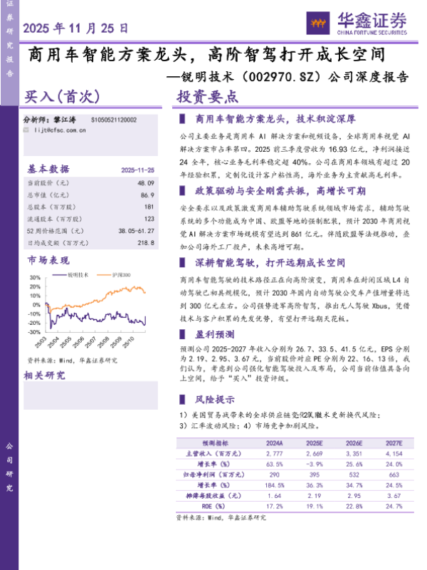【华鑫证券】【202511】商用车智能方案龙头,高阶智驾打开成长空间-25页 证券期货研究报告
