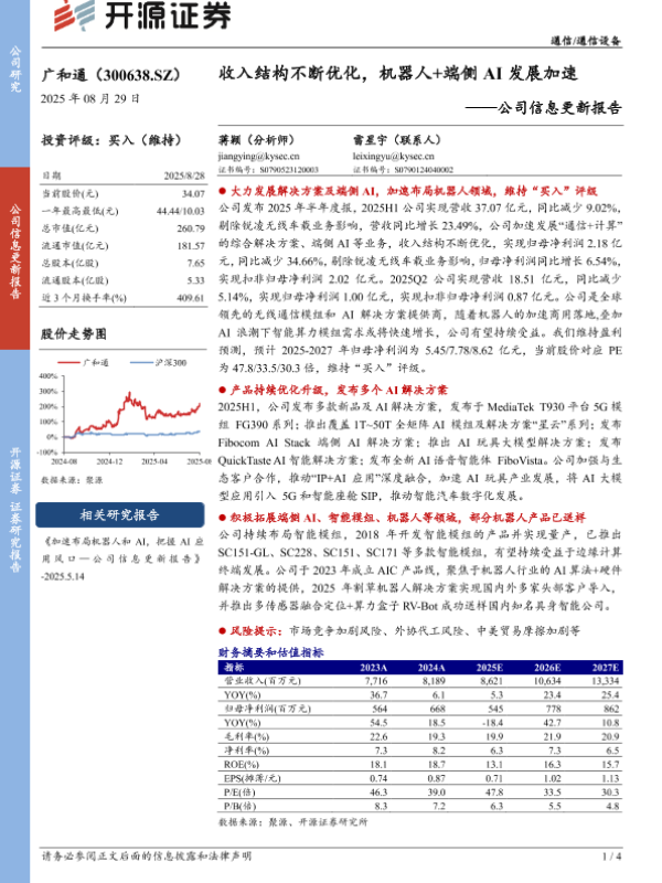 【开源证券】【20250829】广和通-收入结构不断优化,机器人+端侧AI发展加速-4页 证券期货研究报告