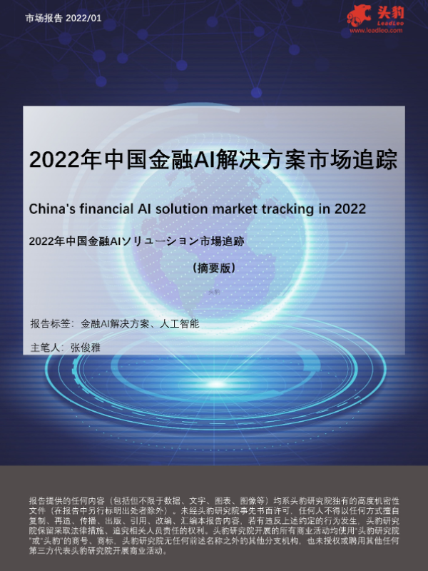 【头豹研究院】【20220329】2022年中国金融AI解决方案市场追踪-33页 行业研究