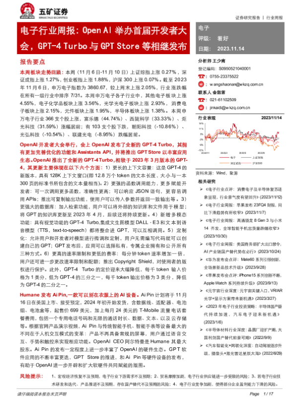 【分析师王少南】【20231114】Open AI举办首届开发者大会,GPT-4 Turbo与GPT Store等相继发布-16页 行业研究