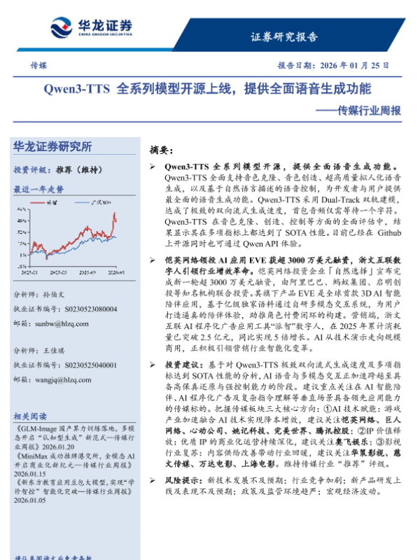 【华龙证券】【202601】Qwen3-TTS全系列模型开源上线,提供全面语音生成功能-10页 证券期货研究报告