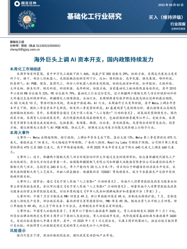 【国金证券】【20250802】基础化工行业周报:海外巨头上调AI资本开支,国内政策持续发力-23页 证券期货研究报告