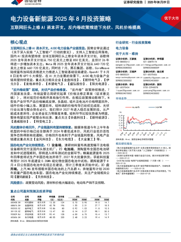 【国信证券】【20250809】互联网巨头上修AI资本开支,反内卷政策推进下光伏、风机价格提高-26页 证券期货研究报告