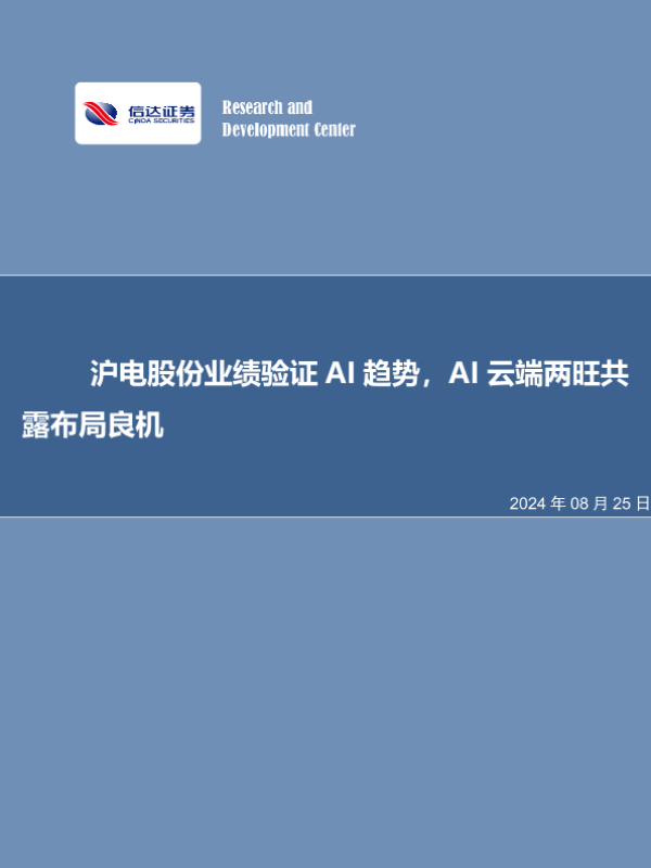 【信达证券】【20240825】沪电股份业绩验证AI趋势,AI云端两旺共露布局良机-12页 行业研究