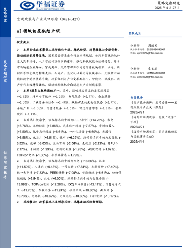 【华福证券】【20250427】宏观政策与产业风口跟踪:AI领域制度供给升级-14页 宏观策略