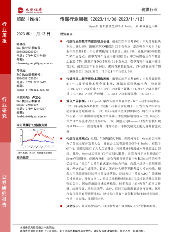 【东莞证券】【20231112】传媒行业周报:OpenAI发布新模型GPT-4 Turbo,AI领域催化不断-12页 行业研究