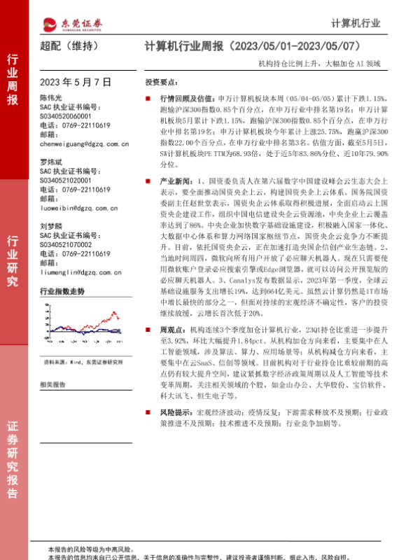 【东莞证券】【20230507】20230507-东莞证券-计算机行业周报:机构持仓比例上升,大幅加仓AI领域-10页 行业研究