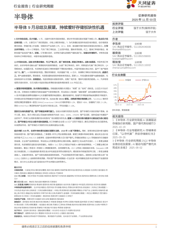 【天风证券】【202511】半导体9月总结及展望,持续看好存储板块性机遇-28页 证券期货研究报告