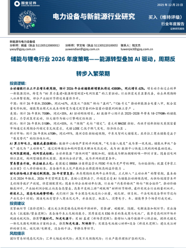 【国金证券】【202512】储能与锂电行业2026年度策略:能源转型叠加AI驱动,周期反转步入繁荣期-49页 证券期货研究报告