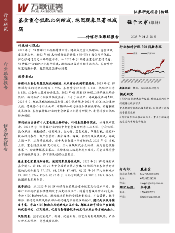 【万联证券】【20230428】传媒行业跟踪报告:基金重仓低配比例缩减,抱团现象显著性减弱-12页 行业研究