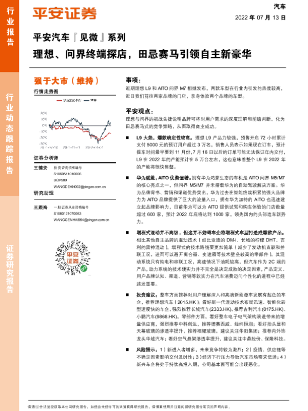 【平安证券】【20220713】平安汽车『见微』系列:理想、问界终端探店,田忌赛马引领自主新豪华-12页 行业研究