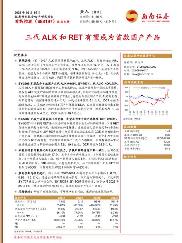 【西南证券】【20230208】20230208-西南证券-首药控股-688197.SH-三代ALK和RET有望成为首款国产产品-30页 行业研究