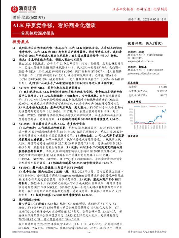 【浙商证券】【20230518】首药控股深度报告(688197):ALK序贯竞争强,看好商业化潜质-21页 行业研究
